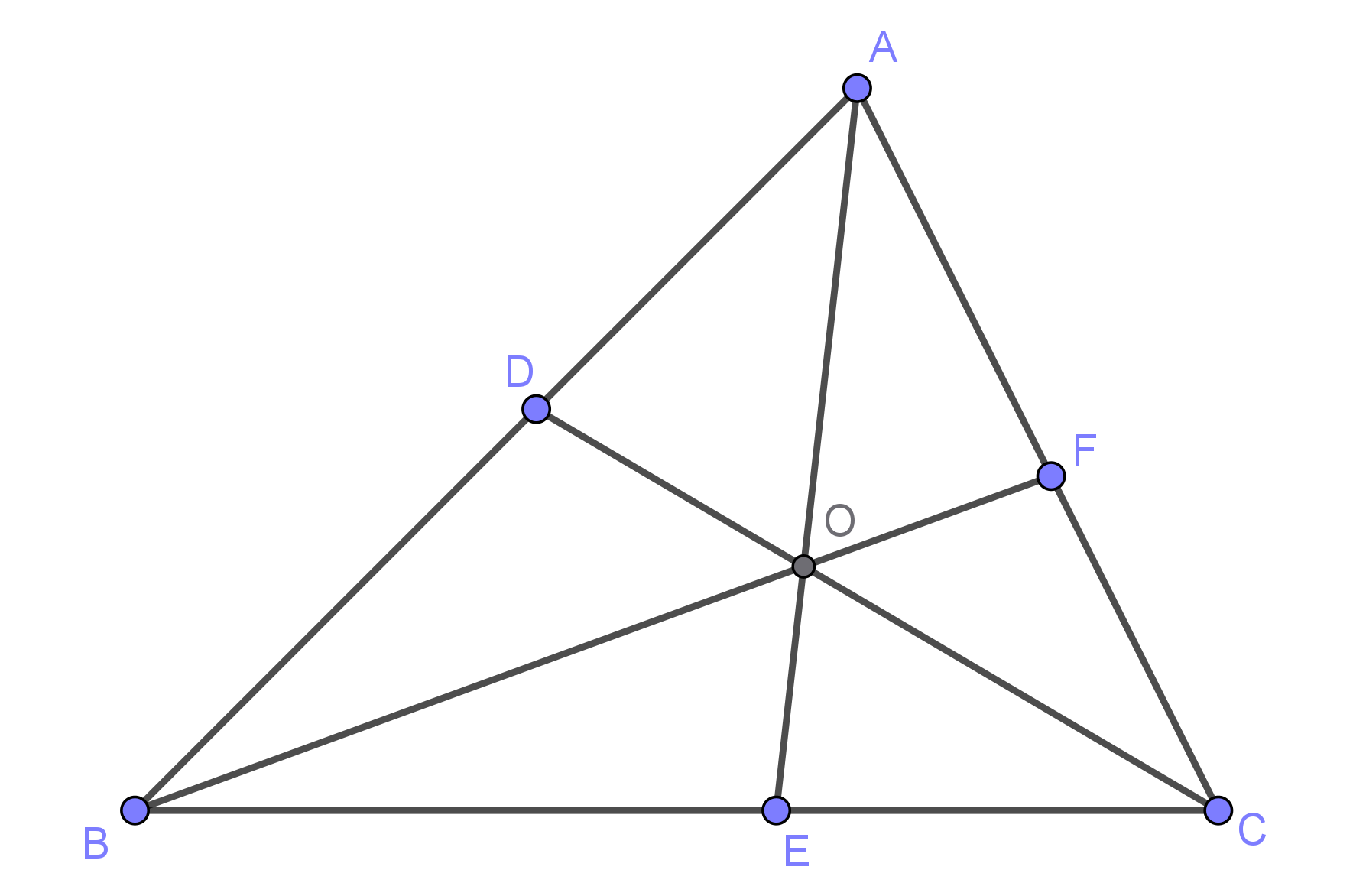 DBAD⋅ECBE⋅FACF=[△BCO][△ACO]⋅[△ACO][△ABO]⋅[△ABO][△BCO]=1■Note: [△AOD] represents the area of △AOD