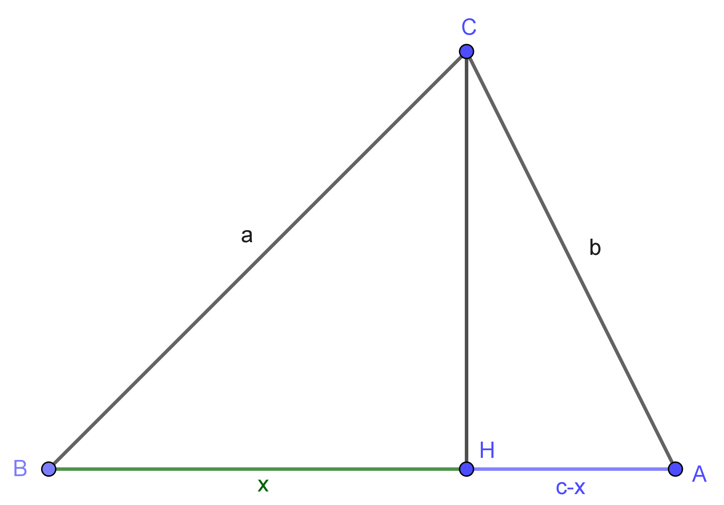 a2−x2a2−x22cxx=b2−(c−x)2=b2−c2+2cx−x2=a2−b2+c2=2ca2−b2+c2 S△ABC=21AC⋅BH=21a⋅c2−(2ca2−b2+c2)2=41[a2c2−(2a2−b2+c2)2]=161[4a2c2−(a2−b2+c2)2]=16(2ac)2−(a2−b2+c2)2=16(2ac+a2−b2+c2)(2ac−a2+b2−c2)=16[(a+c)2−b2][b2−(a−c)2]=16(a+c+b)(a+c−b)(b+a−c)(b−a+c)=2a+b+c2−a+b+c2a−b+c2a+b−c=2a+b+c(2a+b+c−a)(2a+b+c−b)(2a+b+c−c)(Qin Jiushao’s formula)Now, let p=2a+b+c, then: