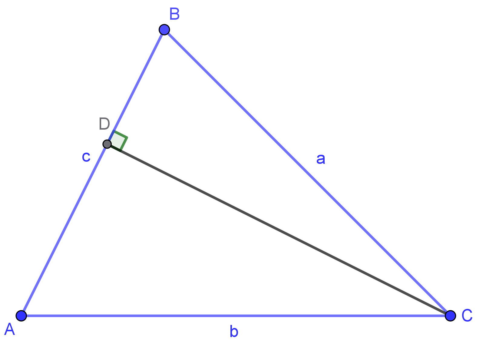 Draw a prependicular line from point C to side AB and intersect with it at point D, and we have: